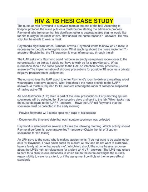 Read Online Hesi Case Study Hiv Tb Answers Doc